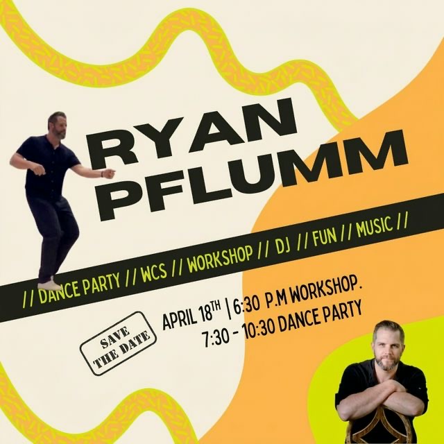 SCDC is happy to welcome Ryan Pflumm to the SCDC for a fun evening - a WCS workshop and social dancing!