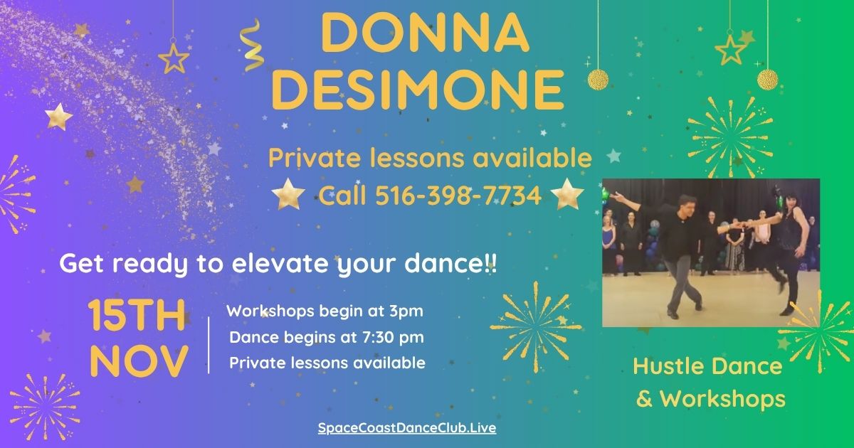 Donna DeSimone has been teaching dance since 1976, bringing an incredible wealth of knowledge and passion to every step. With expertise in Ballet, Tap, Jazz, Broadway Theater, Ballroom, Country, Hustle, and West Coast Swing, Donnaβs elegant yet athletic style is truly unmatched! Donna DeSimone will be bringing her expertise and energy to SCDC on November 16th for workshops and a fantastic social dance! Donna will have a limited number of private lessons available that weekend. Reach out to Deborah at 443-253-2090 to book your lesson while they are available. Whether you're a seasoned dancer or just starting out, you wonβt want to miss this opportunity to learn from one of the best in the industry. ** Private Lessons Available β Call 516-398-7734 ** |